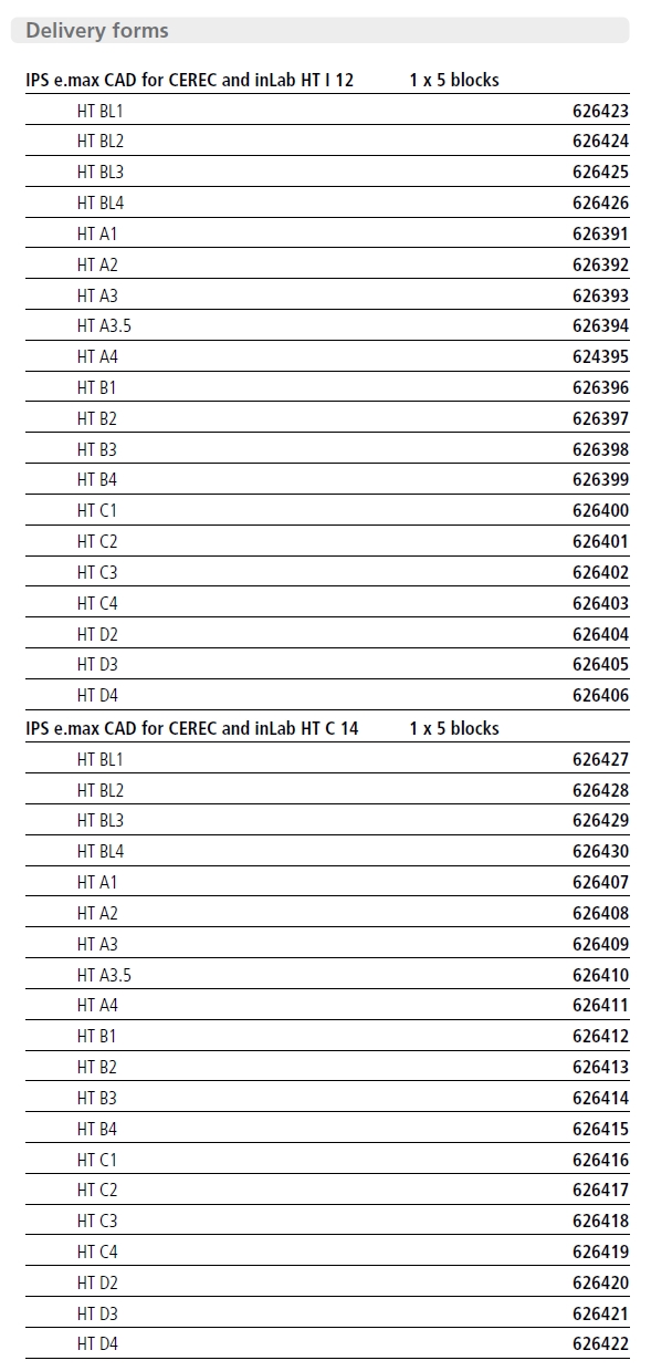 IPS e.max® CAD for CEREC® and inLab® LT / I 12 and C 14 Blocks