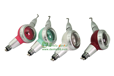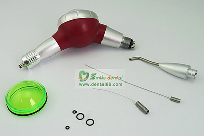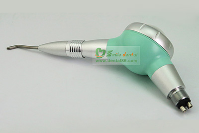 Prophy-Mate is a kind of dental descaler equipment which is used synthetically with complex treatment method in dental surgery. It is connected to the joint of high speed manual machine of complex treatment unit, the air souse(0. 3Mpa-0. 4MPa)and water source(0. 2MPa-0. 4MPa)on complex treatment unit will control air pressure and water pressure of Prophy-Mate. The operating principle of Prophy-Mate is as follows: The sand blasting powder in case would spurt out from nozzle via pipeline by compressing the air into case At the time of powder spurting out, it mixes with water spurting out from mouth of Prophy-Mate to form into a foggy mixture. And this mixture would spray on the surface of teeth. DESIGN FEATURES: 1. The appearance is handsome and dexterous and the structure is indiscrete