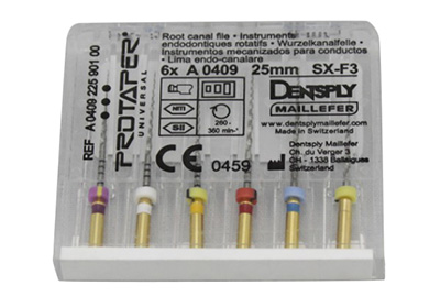 ProTaper Universal RotaryBenefits: * Shaping files up to size ISO 050 (also available as manual files) * Files specially designed for retreatment procedures * Solutions dedicated to obturation and perfectly matched to tapers of ProTaper finishing files: paper and gutta-percha points for ProTaper and ProTaper obturators * Based upon their exclusive multiple taper design, ProTaper files makes canal shaping easier, safer, faster and more efficient * The cutting features and the small number of instruments required make ProTaper an ideal choice for daily practice