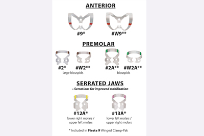 SDT-KTH09966 Rubber Dam Clamp Coltene Fiesta 9 H09966 Fiesta 9 Winged Color Coded Clamp Pak (Color Coded GET ORGANIZED... with Fiesta® Color Coded Clamps