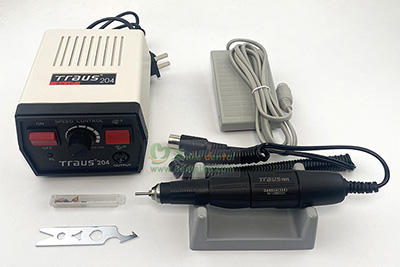 MM12T TRAUS 204/102L Brush Motor Set RPM:MAX 35,000rpm Torque:280gf.cm Input:110V 60Hz/220V 50Hz Output:DC0-32V Basic model,Mini-compact design Less-vibration standard carbon brush motor Right & Left turning ability Non stage speed system On/Off switch
