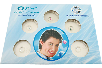 THE Teeth decorations, modeled on optical principle of diamonds, are a kind of artificial crystal-ornament for dental use only. Its top surface is made from artificial crystal, which metal reflection surface was plated on the button in order to reflect light with dirrerent colors. To make the surface reflect enough brightness. M502 Teeth decorations have more small reflection cut surface (normally 15 symmetrical processing reflection cut surfaces) than other mormal accouterments.